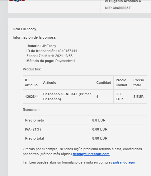 Estaba claro que era un baneo muy grave. -------- para el OP del tema, @iJHZecey si quieres una giftcard por el importe para gastar en la tienda, https://go.librecraft.com/tienda