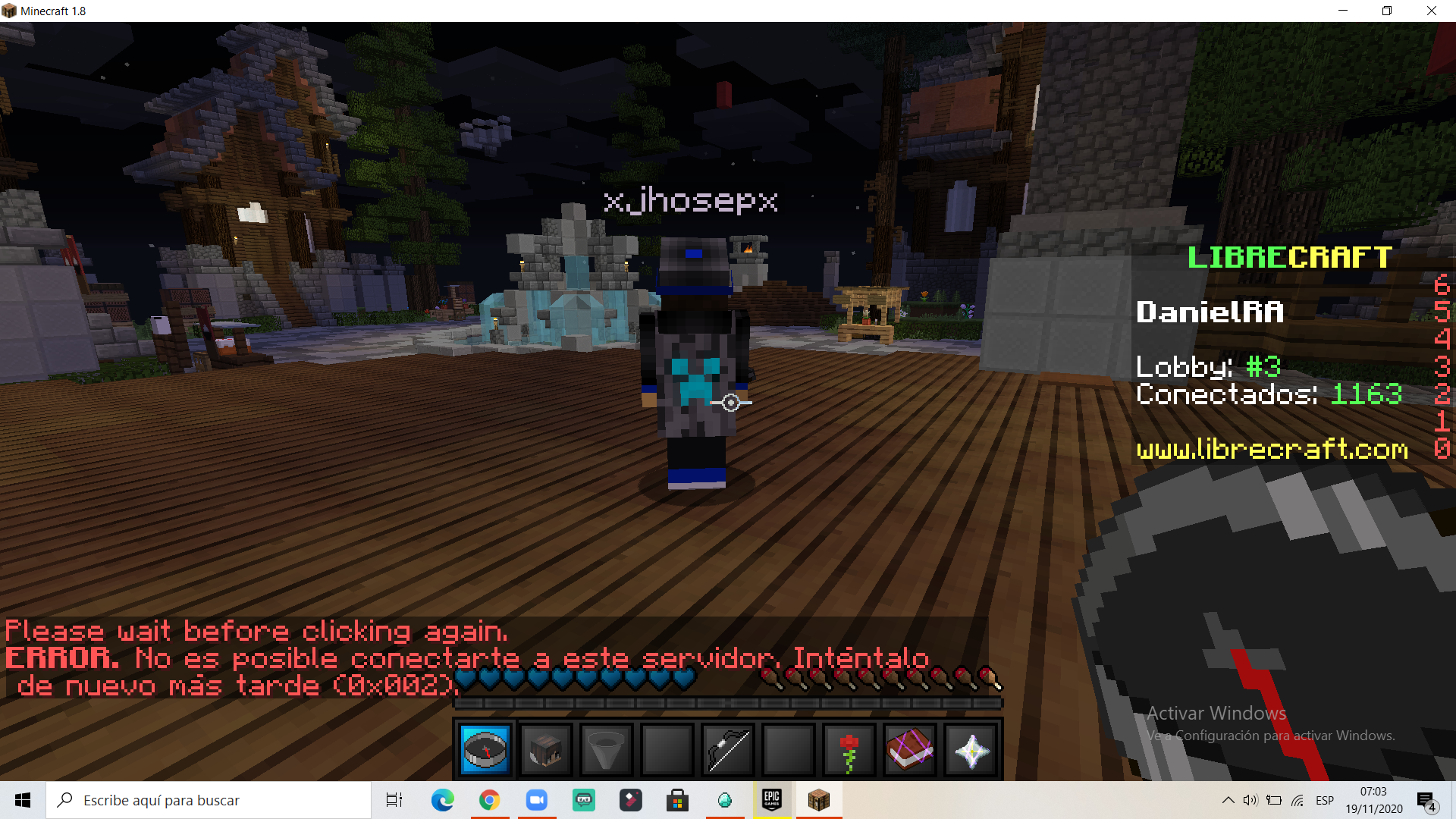 En Mi Pais Son Las 7:03 Acabo De Notar Que No Deja Entrar A SkyBlock y Cuando Quiero Entrar Sale Esto
