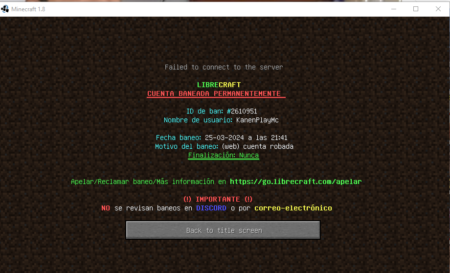 hola Admins Ayúdenme por favor no se q hacer estoy muy angustiado me siento muy mal acabo de ingresar a mi cuenta de KanenPlayMc y me encuentro con el baneo del titulo intente apelar pero me decia q la contraseña o nombre de mi cuenta del juego es incorrecta supongo q el q me robo la cuenta le cambio la contraseña ingrese en una antigua cuenta q tenia q me regalo mi hermano hace 3 años y vi q los casi 400 set y espadas op desaparecieron de sus cofres y la mayoria de cofres están destruidos no se q hacer no puedo hacer nada no puedo cambiar la contraseña en la opccion de cuenta olvidada porque mi cuenta no esta vinculada a un correo intente vincularlo y no pude no puedo hacer nada solo esta en sus manos de que crean mis palabras por favor ayúdenme a que pueda recuperar mi cuenta hay les mandare captura donde mi cuenta me pertenecía y tenia permisos en mi /ps home /ps info ayudenme porfavor a recuperar mi cuenta ustedes admin solo pueden hacerlo ayudenme prfavor la contraseña fue cambiada por el q la robo supongo se los pido 1000 veces disculpe las molestias
