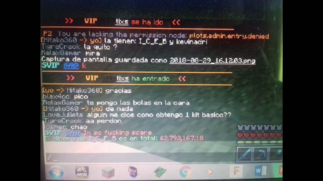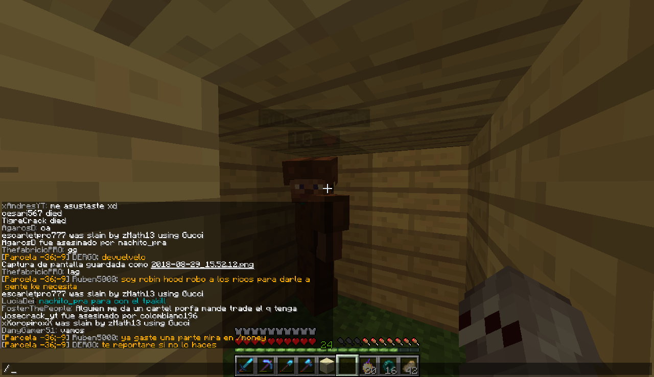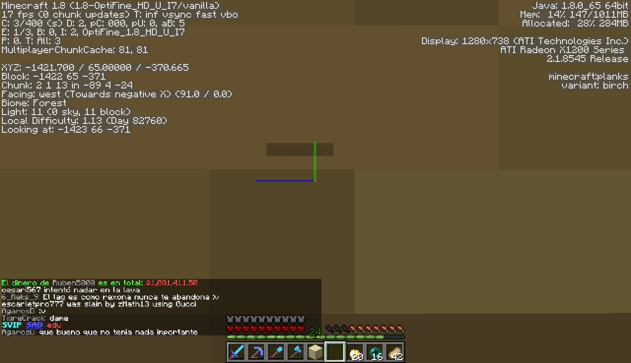 Ahorita anda un jugador trolleando con una tienda, dice que quiere probar algo en una puerta. Dice que la abran rapido, detras de esta hay lava y seguidamente un cartel. Cuando hace esto roba el dinero y lo pasa a una multi. Me robo 2.5 millones y justo a la par habia un jugador que misteriosamente su money subio a 3 millones. Agradeceria si el dinero me lo podrian regresar o al menos darle ban a este jugador. en esta captura se ve al otro jugador. Adjunto otras pruebas Al parecer el dinero paso 1M a una cuenta llamada I_C_E_B y la de kevinadri se quedo con 2M. Incluso el tiempo de coneccion es muy similar entre las 3 cuentas. Tambien tienen permisos en la misma parcela que fue claimeada. Esta ultima informacion me ayudo otro jugador porque bloqueo de su parcela. Tambien por alguna razon no me sale el cuadro de la derecha donde estan las estadisticas del jugador