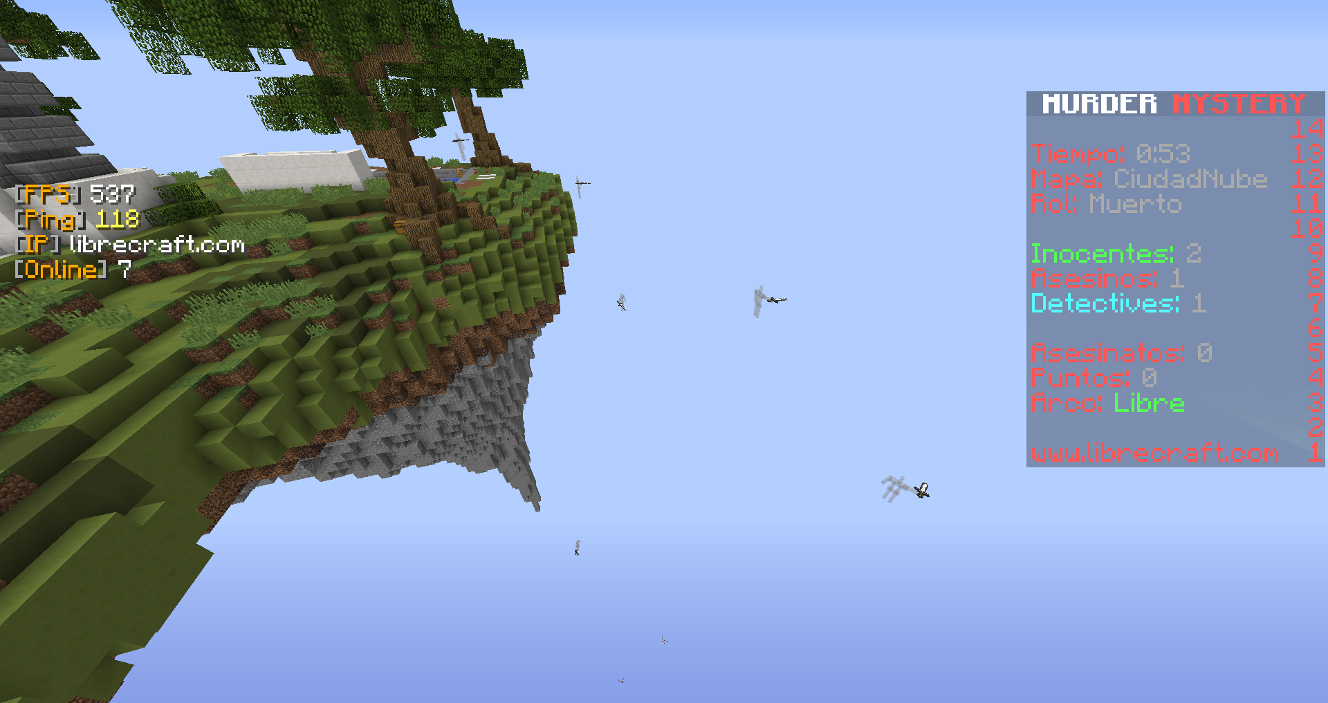 Este fallo lo reporte hacia tiempo (https://librecraft.com/foro/tema/fallos-bugs-entre-otras-cosas.139967/) por alguna razón solo pasa en CiudadNube, lo más probable es que cuando el asesino gana y quiere celebrarlo lanzando el cuchillo al cielo y la partida se reinicia el cuchillo se queda congelado. La sugerencia no es tanto porque sea "divertido" suicidarse, es más por estética cómo dice @DanielG, además recuerdo que una vez andaba distraído y sin querer queriendo me caí a ese mini posó de lava. Por otro lado te recomiendo que investigues más en vez de dar un argumento tan vago cómo lo es "suicidarse", para mí es más divertido combear a personitas que se creen mejores que yo