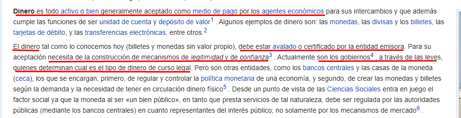 2. Debe estar avalado o certificado. El BITCOIN está avalado por la confianza que le dan los que tienen bitcoins y aceptan bitcoins. Si mañana nadie acepta bitcoins, tienes 0 dinero.
