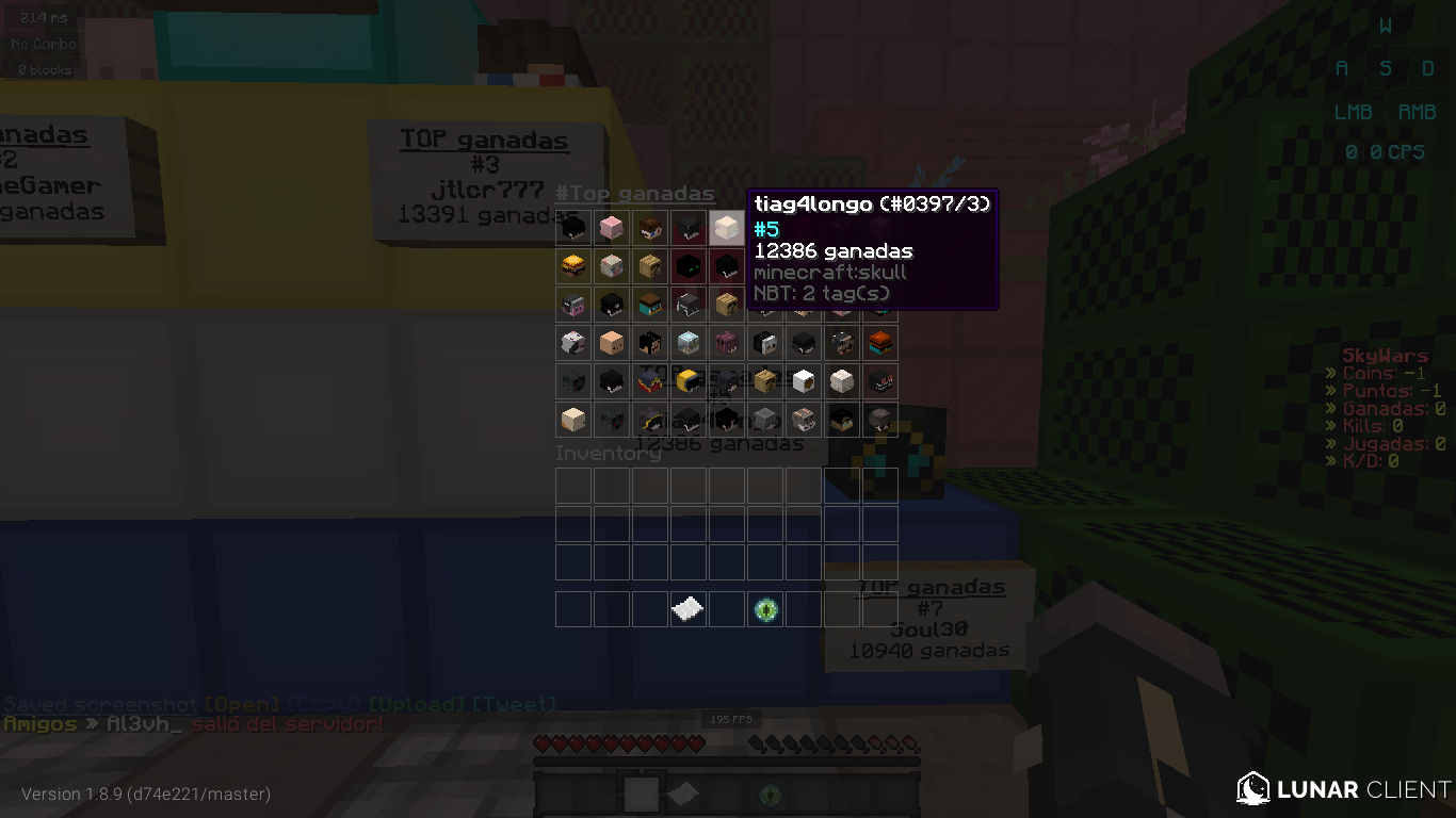 Desde ya agrego que skywars 1 estaba con lag y decaído, posiblemente cuando entre habrá generado un bug y hizo que se me resetearan