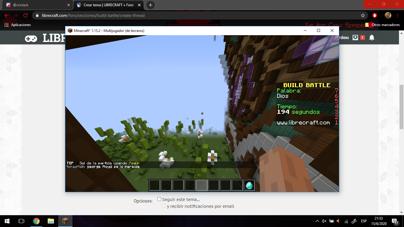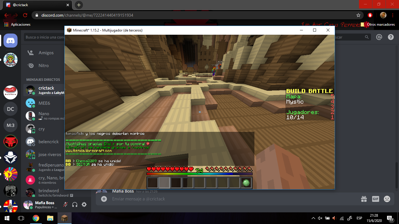 Estoy reportando al usuario tomasfish por incitacion al odio en el chat, comentarios como, ¨los gays deberian ser ilegales¨ tambien como coasa relacionadas con la situacion que esta pasando en EEUU, comentarios como ¨George Floyd se lo merecia¨Claramente este comportamiendo impiden el disfrute total del server Otra cosa: Este usuario ha diseñado un miembro reproductor del hombre (pene) en el juego BuildBattle, esto es insólito, ya que el juego lo juegan niños chicos.