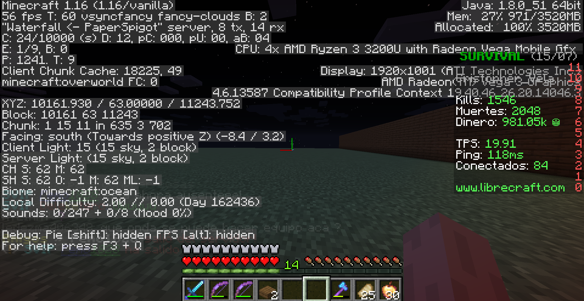 Nickname: Cristopher_Vela Coords: X10150; Y63; Z11236 Rango: Svip Mundo del atajo: Survival
