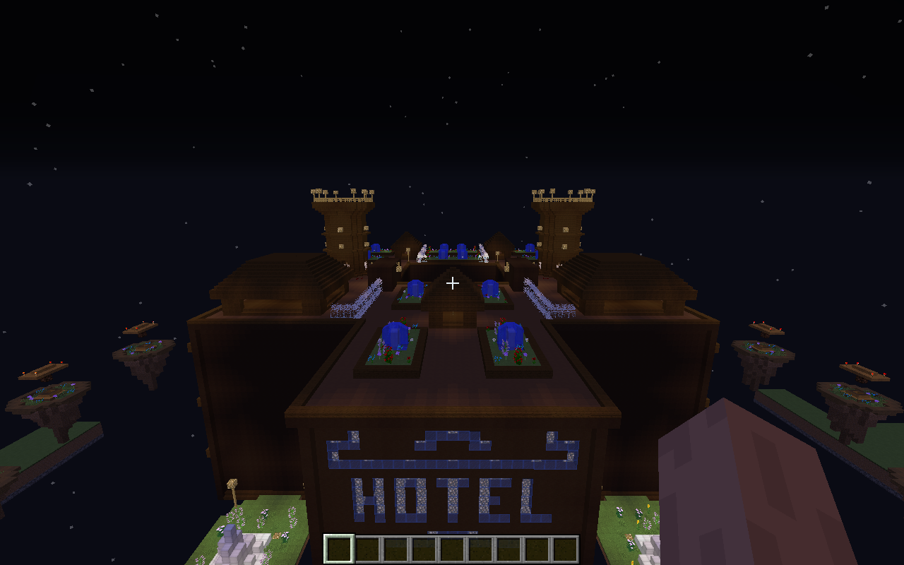 Veo la estructura del Hotel muy gigante, demasiados pisos. El resto del mapa muy plano, le hacen falta un poco de casas u otras cosas. Cualquier usuario puede comprar un mechero y quema todo el mapa, te recomiendo sustituir el exceso de madera por un bloque más fuerte. No es más, el resto del mapa me agradó, buen trabajo.