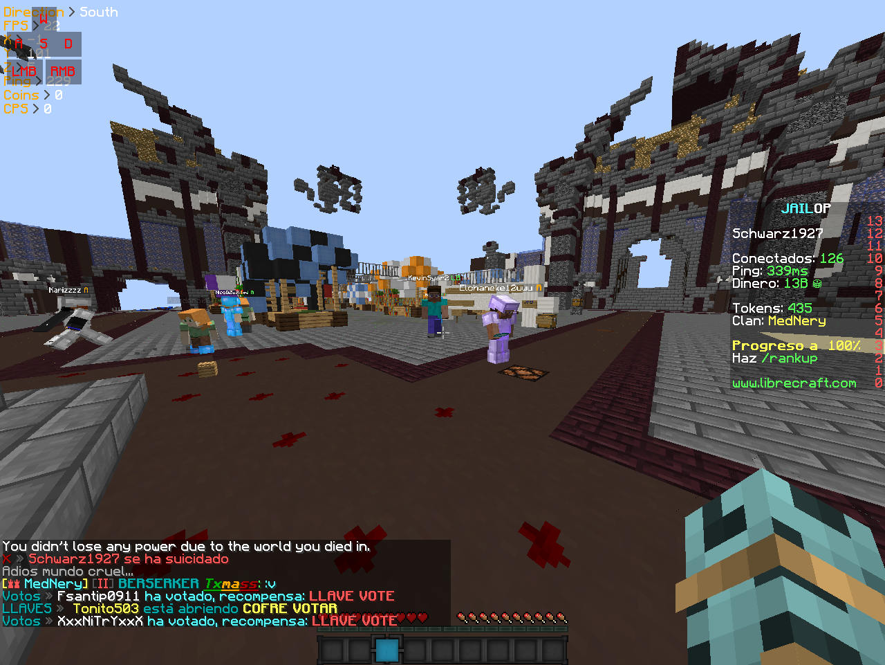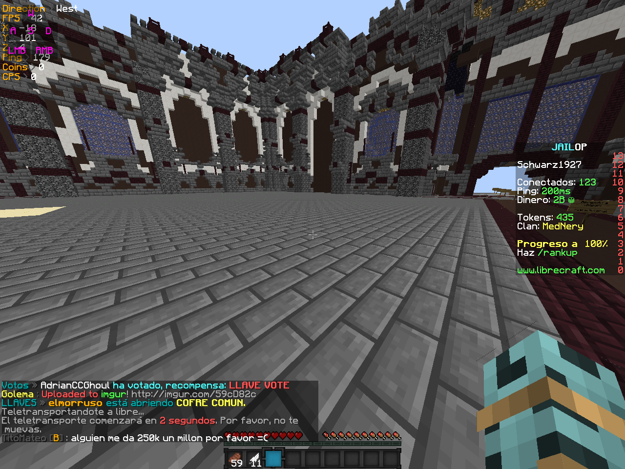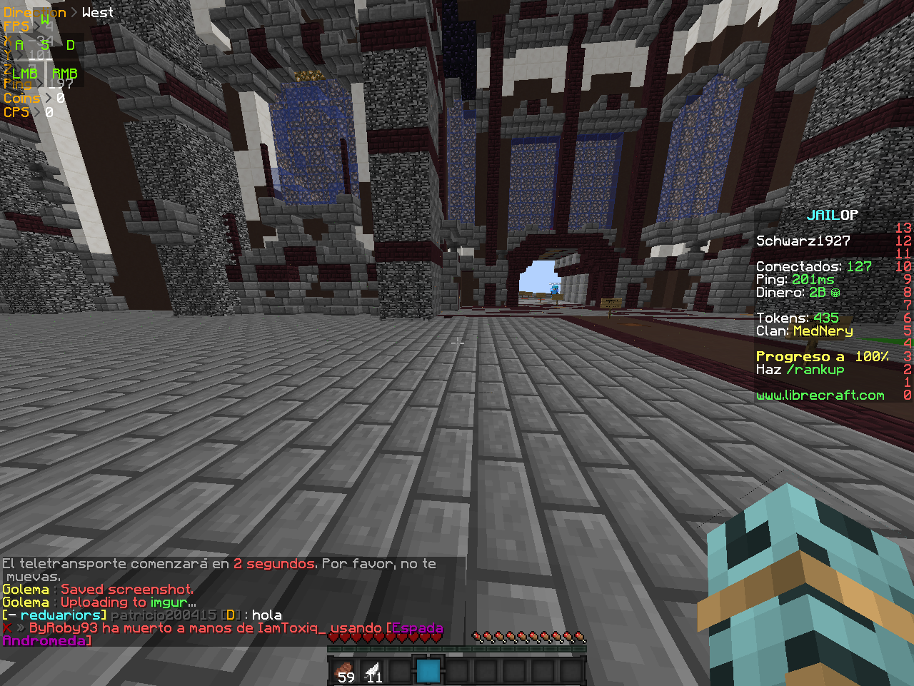 Hola,abro este tema con el fin de que me ayuden,ya que me acabo de bugear en "JailOP",bien el bug que tengo es que no me deja usar ningún /Warp (Pvp-Minas-Libre),ya he usado el comando (/suicide) varias veces,he reiniciado el Minecraft y todo,pero nada sirve,acá les dejo las imágenes y espero que me ayuden pronto...:frowning: