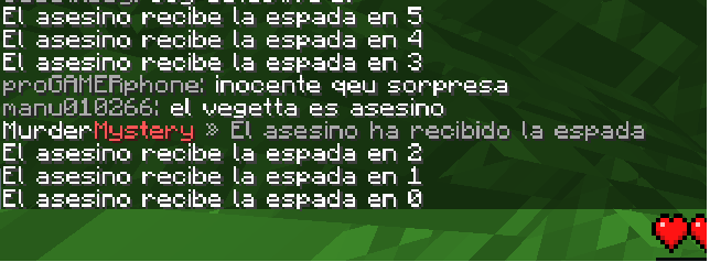 Hola, nada mas vengo a comunicar lo que creo que es un bug, ya hará unos días me fije que cuando empieza la partida, hay una cuenta atrás para dar la espada al asesino, bueno pues en plena cuenta atrás, cuando quedan 2 segundos, aparece otro mensaje de la consola ¨el asesino ha recibido la espada¨, aun quedando 2 segundos de la propia cuenta atrás. En una partida me fije y me dieron la espada a falta de 2 segundos cuando aparece el mensaje que ya mencione. Eso es en si el problema que digo, te dan la espada adelantada 2 segundos antes de que termine la cuenta atrás.
