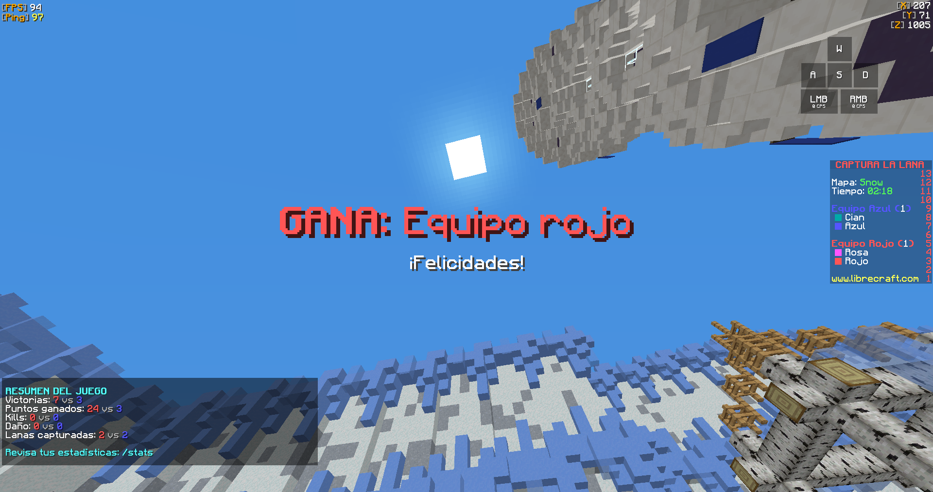 Hola :v, E notado que muchos jugadores que están en el top, hacen un bug cuando las partidas están totalmente solas, entra 1 jugador a cada equipo y los dos colocan la doble lana al mismo tiempo, como se puede apreciar en la imagen....Sería bueno que almenos por partida mínimo tengan que haber 6 jugadores para iniciar, ya que muchos jugadores hacen uso de eso para aumentar los puntos, kills, y lanas colocadas. Gracias