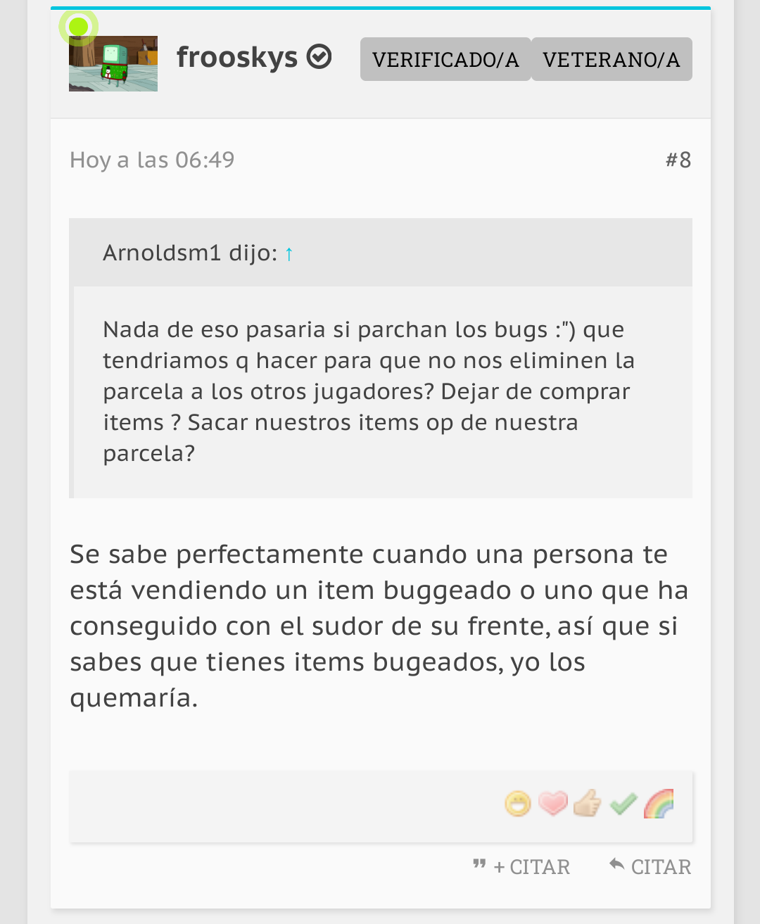 No me jodas, con poseer un ítem buggeado ya te eliminan todas tus parcelas jajaxdd