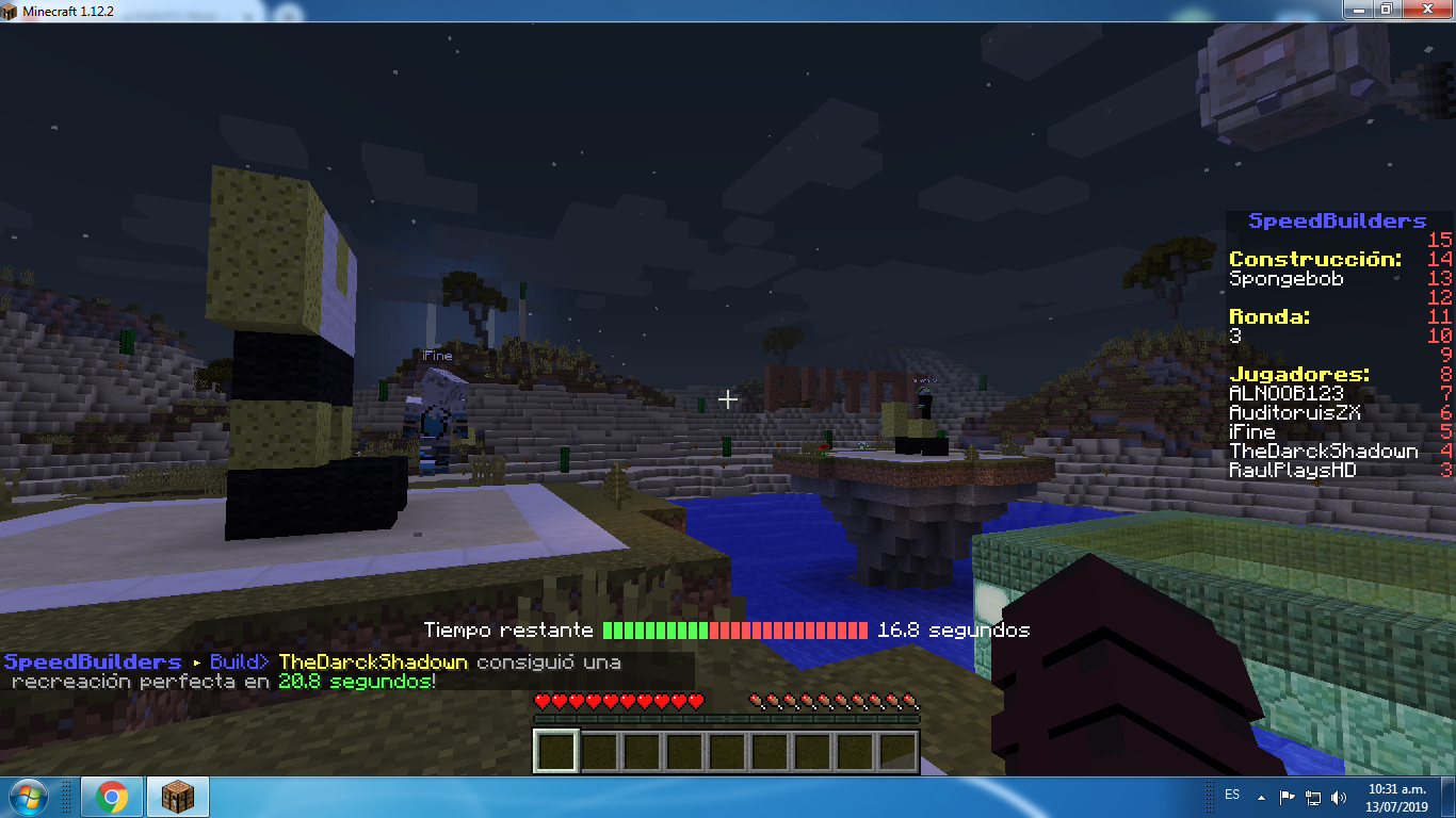 amigo esta chevere la modalidad , me gusta tnato que me exito :v oc no xD pero lo que puedo decir es que hay algunos fallos como por ejemplo este que estaba jugando y me encontre con esto y creo que parece una broma de un builder , un bug o fallo o hay un hacker en el sistema nose pero me lo encontre esto y porfavro arreglenlo. bueno pero me gusta esta modalidad y seria mas Lindo y divertido que arreglaren los bugs plis :)!