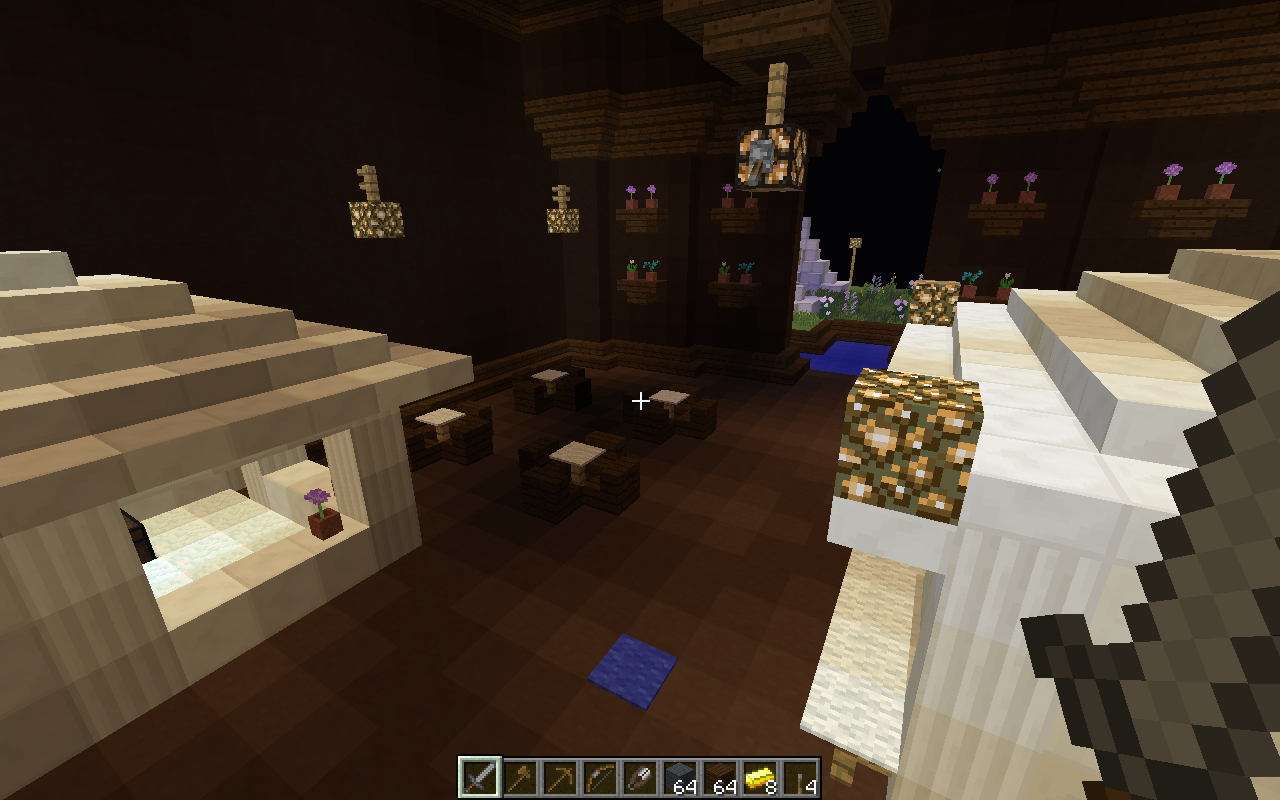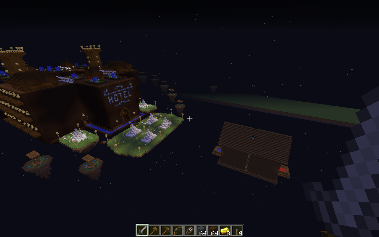 Veo la estructura del Hotel muy gigante, demasiados pisos. El resto del mapa muy plano, le hacen falta un poco de casas u otras cosas. Cualquier usuario puede comprar un mechero y quema todo el mapa, te recomiendo sustituir el exceso de madera por un bloque más fuerte. No es más, el resto del mapa me agradó, buen trabajo.